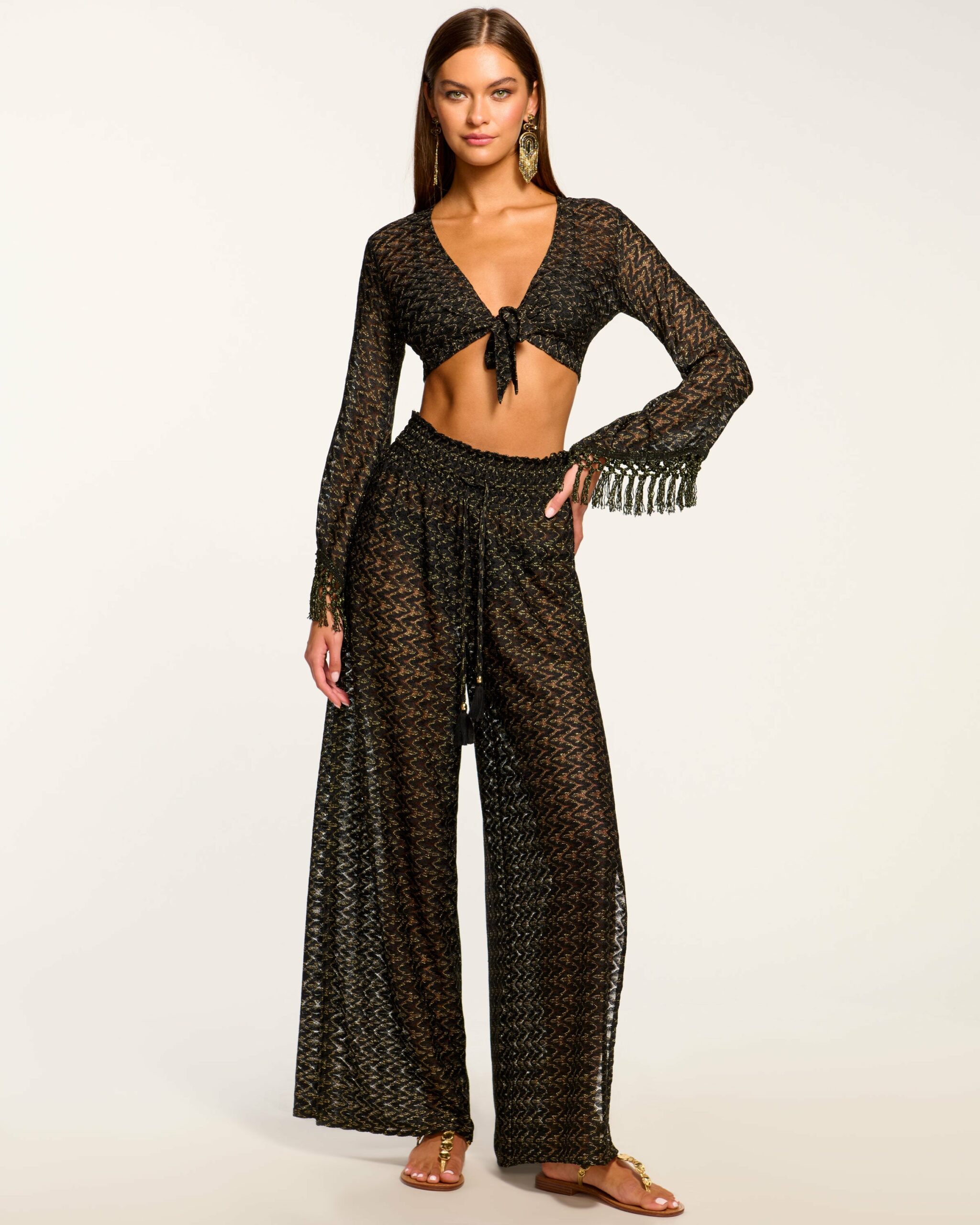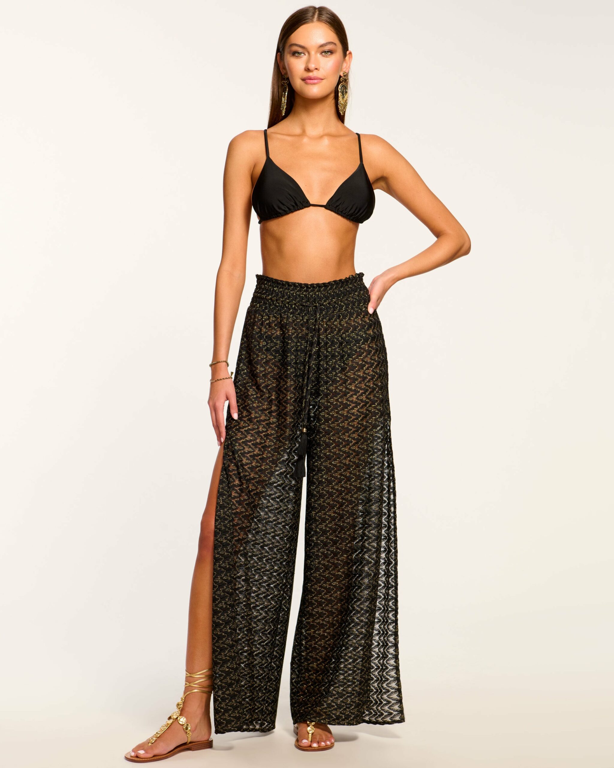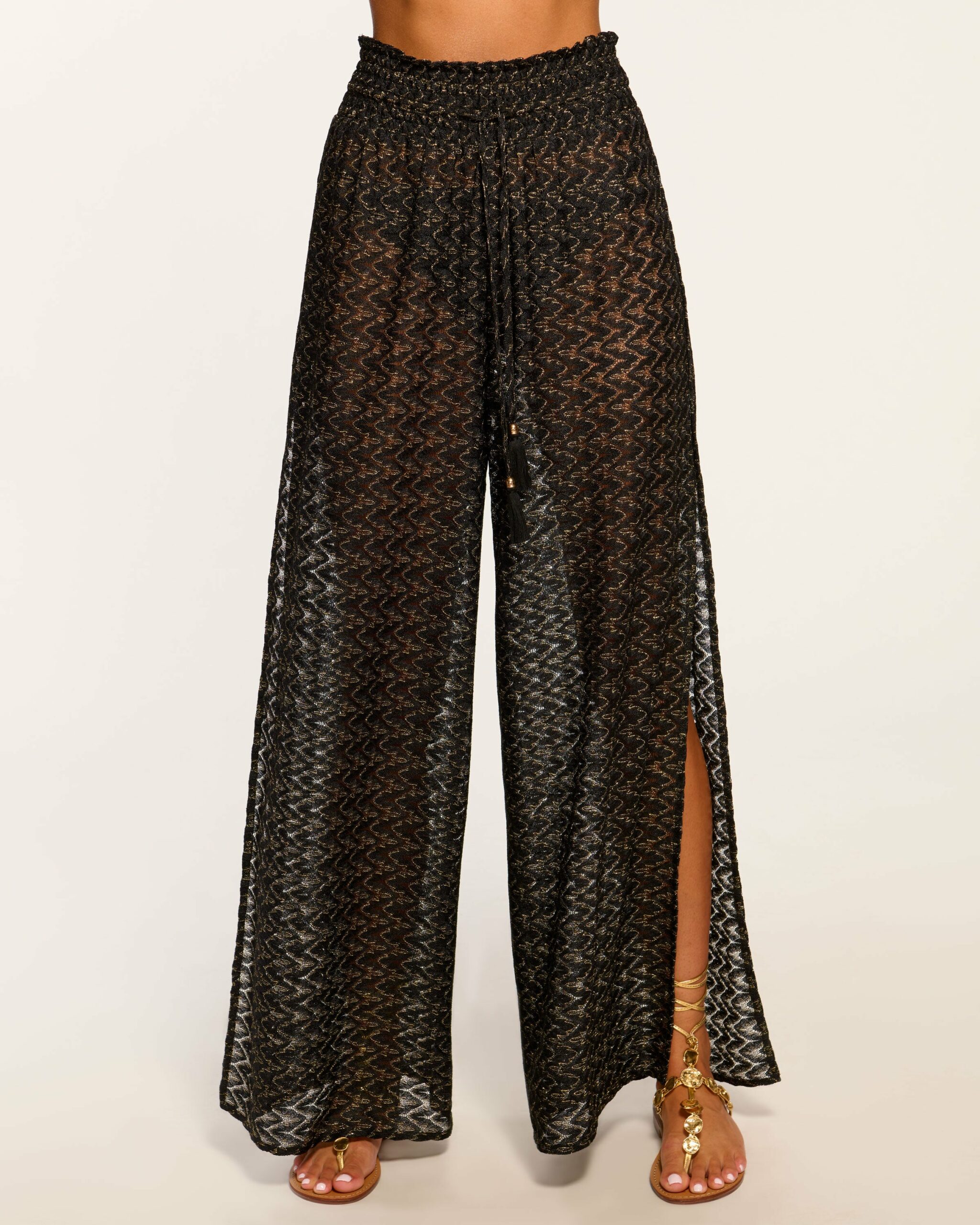 Make your vacation wish come true in the Glora, a relaxed pair of metallic knit pants here to improve your poolside attire. Whether paired with the matching Elvira or a simple bikini top, lap up the sunlight and the limelight in this head turning style. Size & Fit – Fits true to size, take your normal size – Model is Wearing Size XS– Model is 5’9″ Size Guide Details & Care – 94% Polyester 4% Metallic 2% Nylon – Machine wash cold with like colors, do not bleach, do not tumble dry, iron at low heat– Style #: C1122501 Free Delivery & Easy Returns We offer free ground shipping on all U.S. orders and free returns within 30 days on all eligible merchandise. See more details here.
