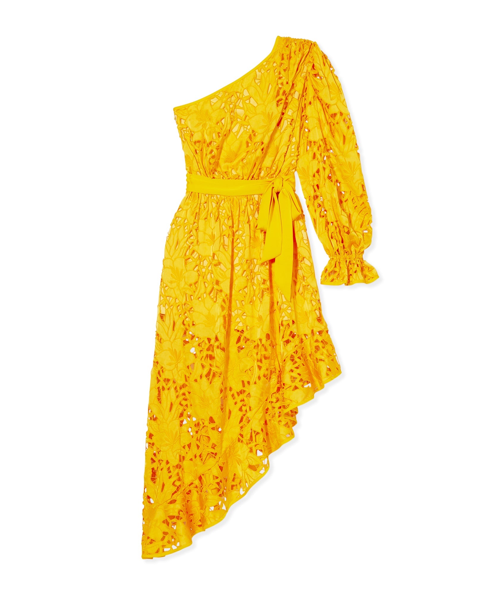 Take your getaway style to greater heights with the Jayda, the perfect piece for a sunny destination. Capture the breeze with this embroidered silhouette complete with cutouts, and let the asymmetrical hemline make every step taken one to watch.Size & Fit – This style runs small, we suggest sizing up. – Model is Wearing Size 0 – Model is 5’9″– Length: 59.5″, based on a size 2 Size Guide Details & Care – Shell: 100% Polyester – Lining: 96% Polyester 4% Spandex – One-shoulder – Sateen cutout fabrication with mini-length lining, unlined sleeves – Satin waist ties – Strapless bra friendly – Asymmetrical hem – Dry Clean or Hand Wash– Style #: A01243018 Free Delivery & Easy Returns We offer free ground shipping on all U.S. orders and free returns within 30 days on all eligible merchandise. See more details here.