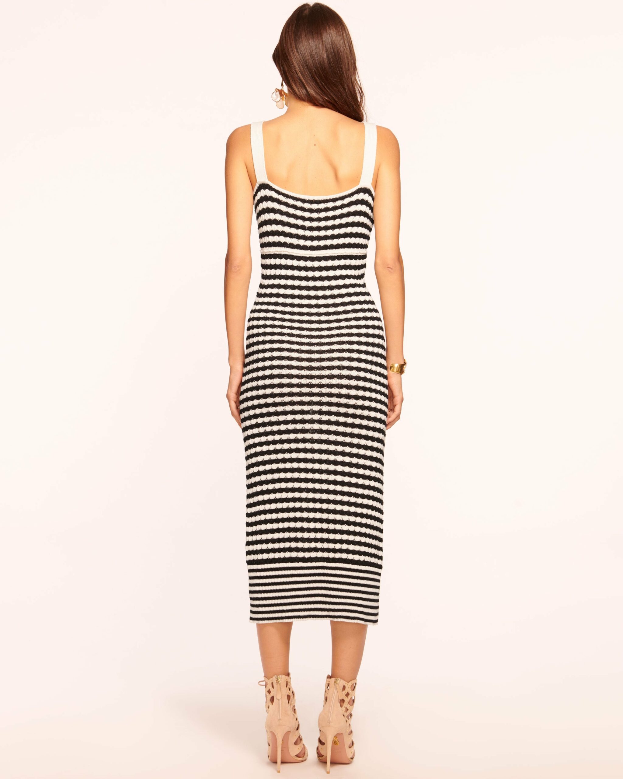 A seductive design to get swept away in, the Jessa is a noteworthy style perfect for your next getaway. With a mid-length and striped silhouette sure to fit your frame like a glove, the peekaboo cutout on the bodice offers a sexy glimpse of skin. Size & Fit – Fits true to size, take your normal size – Model is Wearing Size XS – Model is 5’9″– Length: 43″, based on a size 2 Size Guide Details & Care – 55% Organic Cotton 36% Viscose 5% Polyamide 4% Metallic – Bra friendly – Sweetheart neckline with twisted detail – Center cutout – Contrast hem – Dry Clean or Hand Wash– Style #: A02247015 Free Delivery & Easy Returns We offer free ground shipping on all U.S. orders and free returns within 30 days on all eligible merchandise. See more details here.