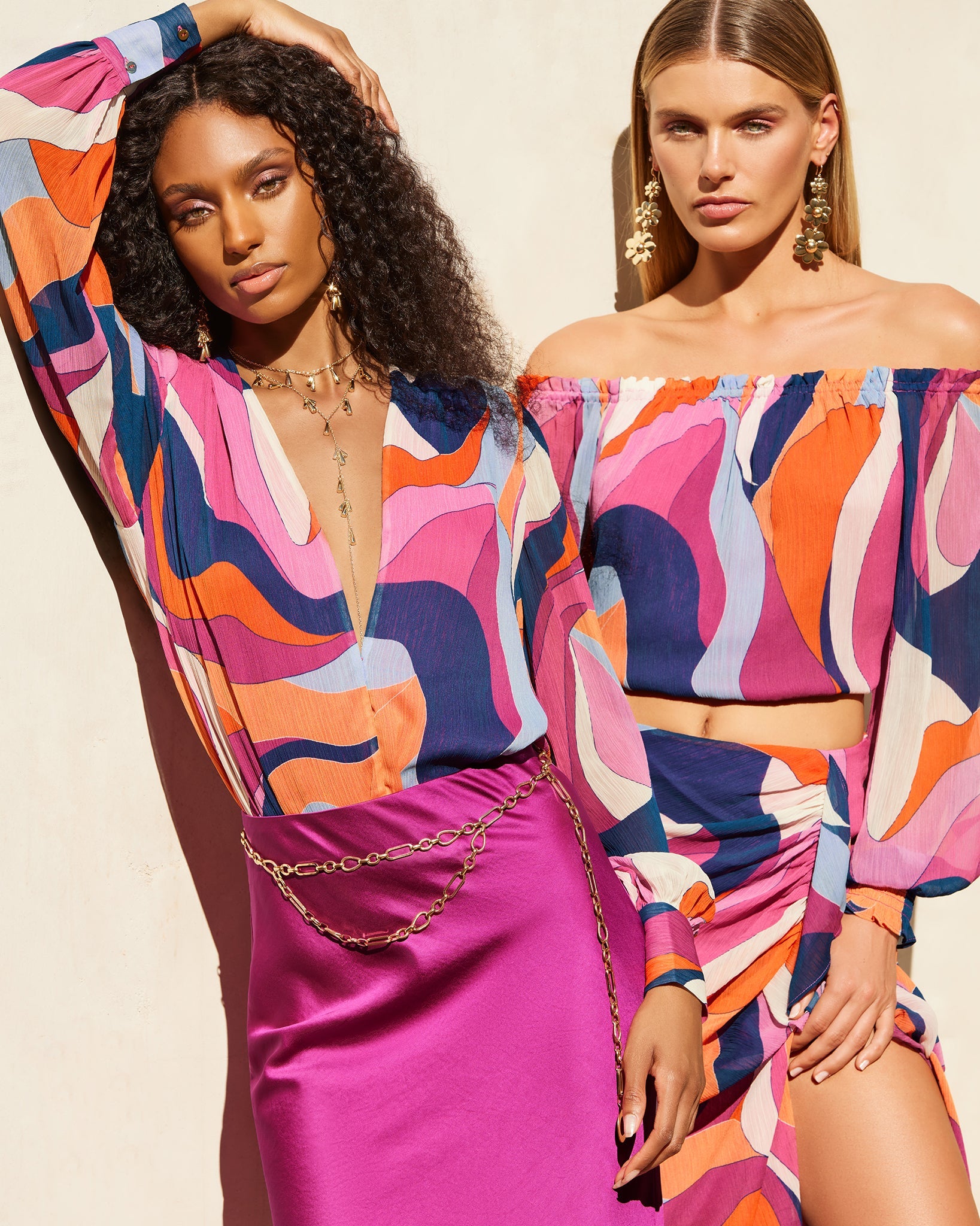 Power up your wardrobe with the Seirin, a seductive bodysuit sure to ignite your Saturday night style. Promising to transfix with the eye catching paradiso wave print, this striking v-neck top features sheer sleeves for an alluring touch you’ll love.This style is sold exclusively at Ramy Brook. Size & Fit – This style runs large, we suggest sizing down. – Model is Wearing Size XS – Model is 5’9″ Size Guide Details & Care – V-neckline – Sheer sleeves – Bodysuit– Style Exclusive– Dry Clean or Hand Wash– Style #: A02242015– 100% Polyester Free Delivery & Easy Returns We offer free ground shipping on all U.S. orders and easy returns within 30 days on all eligible merchandise. See more details here.
