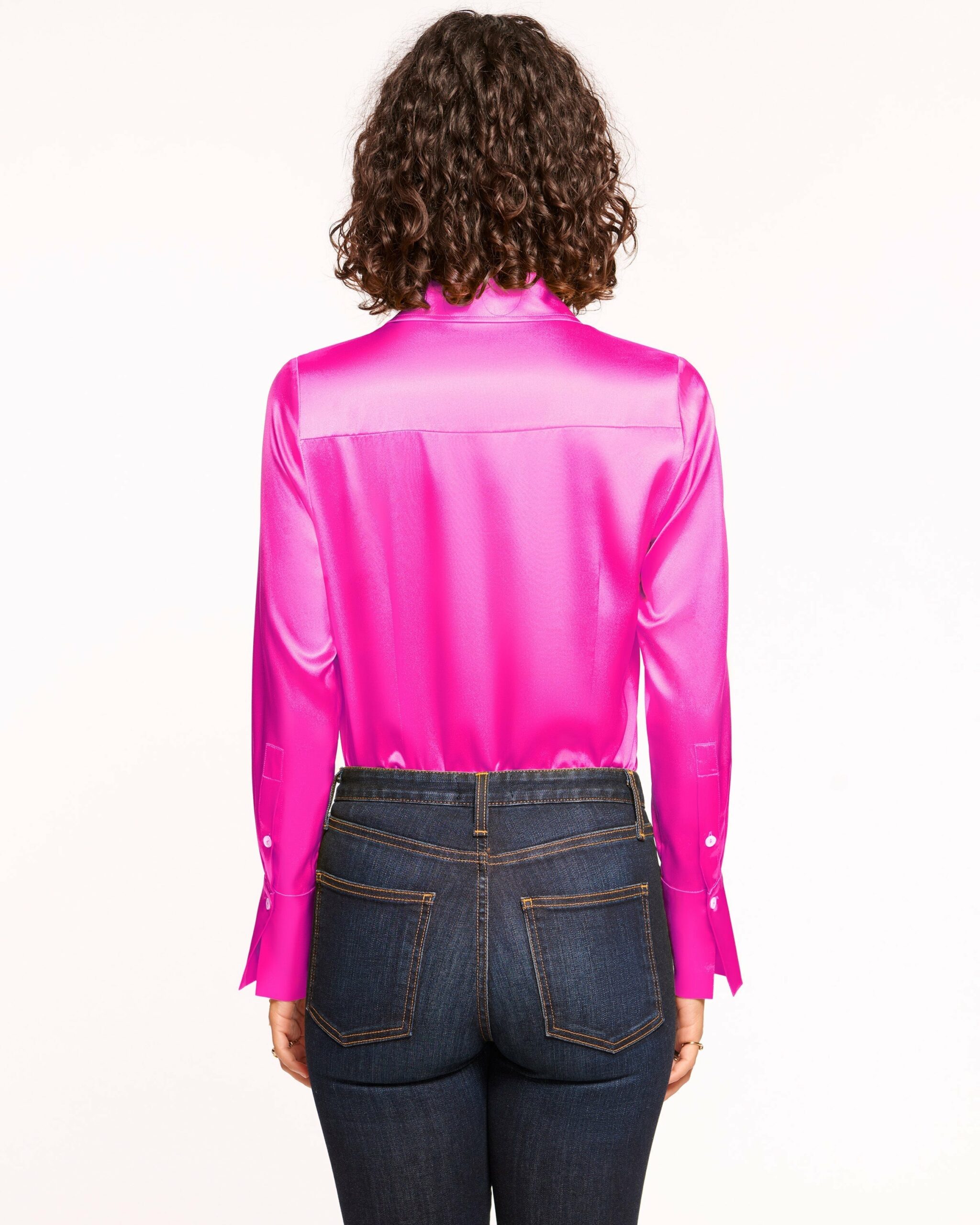 Polished in design, our Victoria Top is our new wardrobe staple on the rise. The slim-fitting button down silhouette gets an elevated spin thanks to the stretch charmeuse fabrication, designed for a comfortable fit. Take the buttons as high or low as you please to make this style your own. This style is sold exclusively at Ramy Brook. Size & Fit – This style runs small, we suggest sizing up. – Model is Wearing Size XS– Model is 5’9″ Size Guide Details & Care – 95% Silk 5% Spandex– Dry Clean or Hand Wash – Style #: A0822218– Style Exclusive Free Delivery & Easy Returns We offer free ground shipping on all U.S. orders and free returns within 30 days on all eligible merchandise. See more details here.